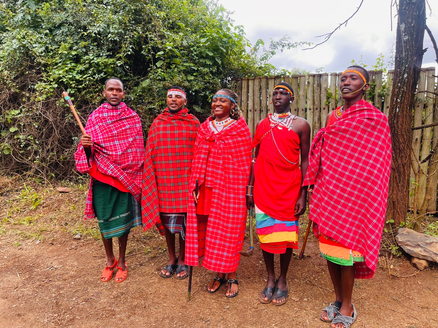 While rerouting, we came across a small group of Maasai men near the roadside. They were dressed in vibrant traditional shukas, adorned with intricate beadwork and carrying their signature spears. We stopped, exchanged greetings, and they invited us to take a few photos with them.